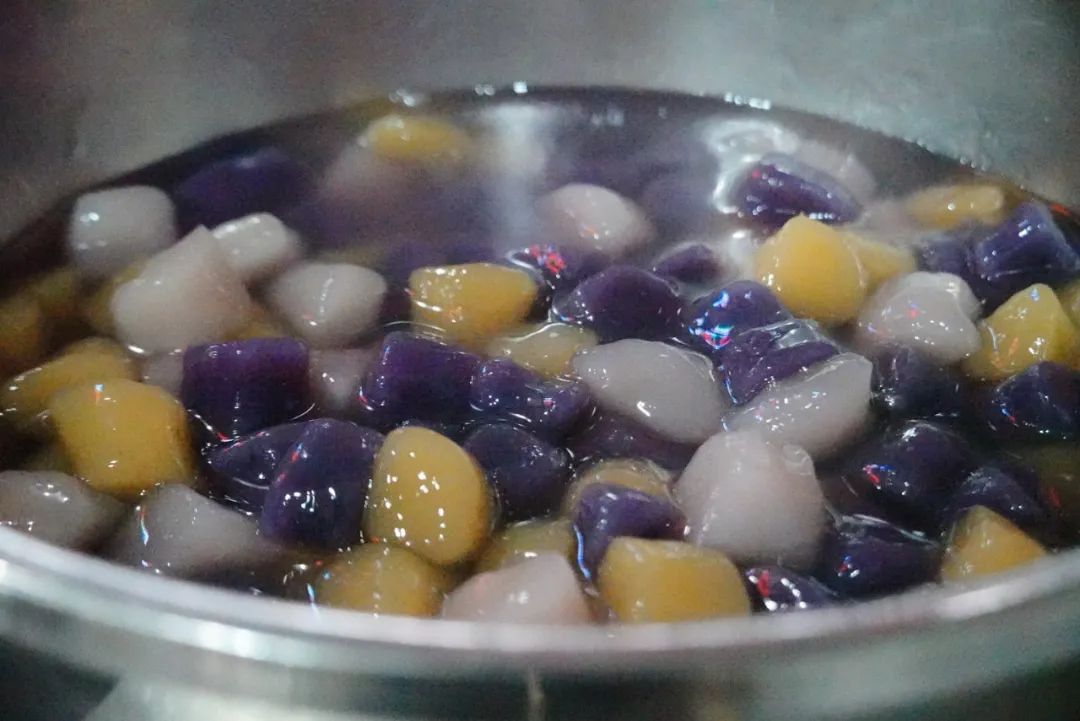 芋圆和汤圆是专人手工制作的,为了保持口感,煮好的芋圆要一直泡在糖水里。