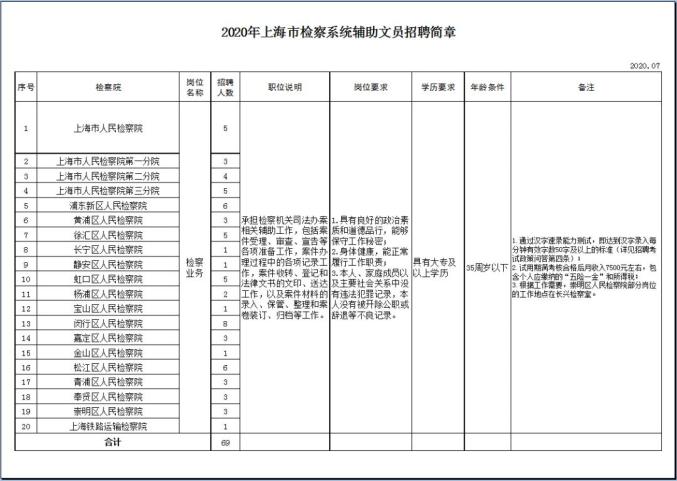招聘政策和考务咨询详见《2020年上海市检察系统辅助文员招聘考试政策问答》和《2020年上海市检察系统辅助文员招聘考试考务问答》。
