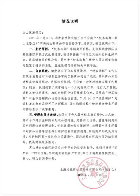 近日,上海金山区消保委开展“2020年线上生鲜消费体察活动”。