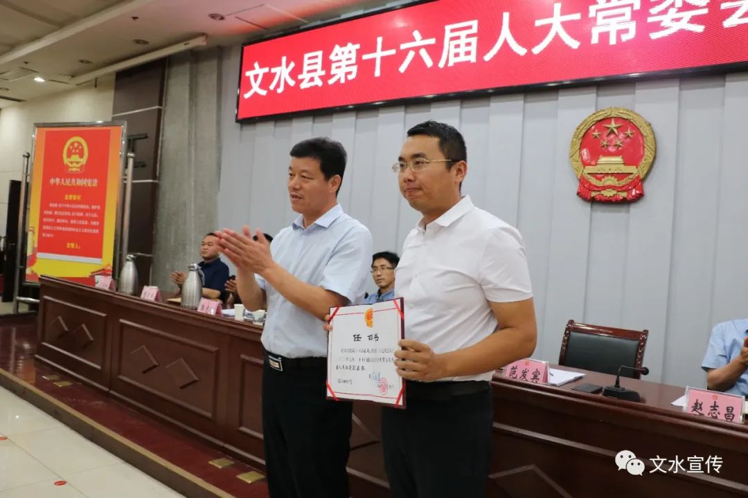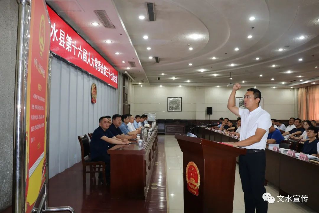 7月20日,文水县第十六届人大常委会召开第三十七次会议。县人大常委会主任范发宾,人大常委会副主任王治国、任守云、郭志刚、郭竹朋,人大党组副书记陷有步等出席会议。县委常委、副县长赵志昌,县委常委、组织部长刘建树应邀出席会议。法院院长李进昱、检察院检察长王宝和、司法局负责人、各乡镇人大主席以及部分县人大代表、县人大各工作机构负责人等列席会议。郭竹朋主持会议。
