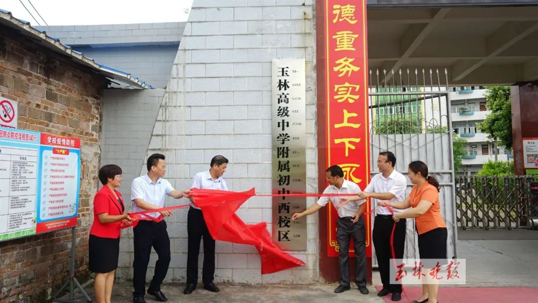 7月20日上午,玉高附中北校区、西校区揭牌仪式分别在玉州区名山中学、名山初中举行。其中,玉州区名山中学为玉林高级中学附属初中北校区,玉州区名山初中为玉林高级中学附属初中西校区。两校区的成立,标志着我市基础教育改革迈出新步伐,“同城联盟”学区制管理工作进入新阶段,优化教育资源而配置、放大优质教育资源效应走出新路径。