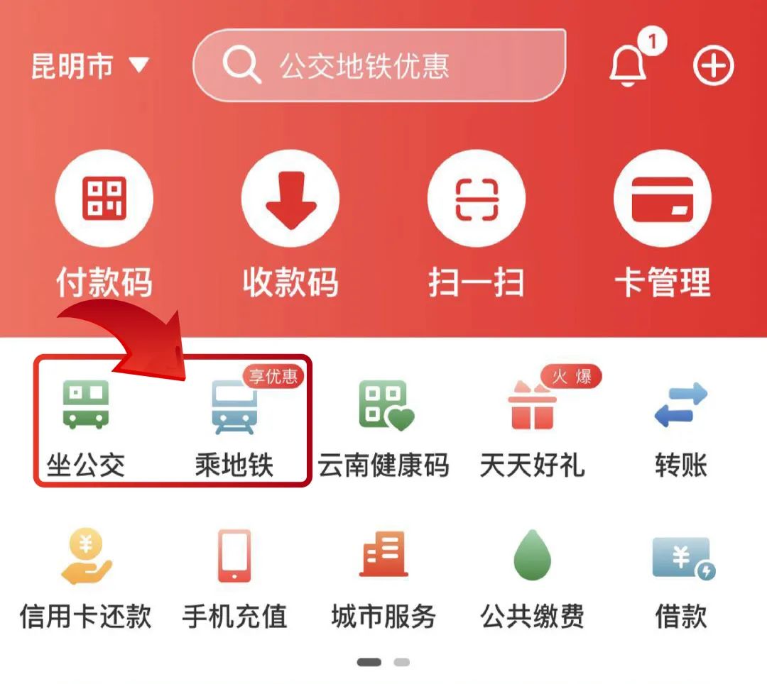 使用云闪付乘坐昆明公交或昆明地铁