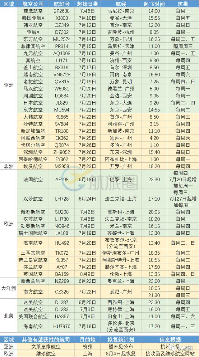 自6月18日至今,已有至少35家国内外航司获批复航、加密中外国际航线,其中25家航司为中断中国航线后复航的外航。