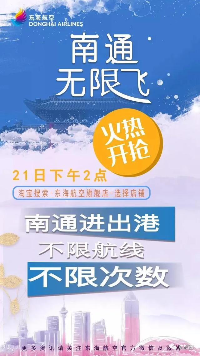 东海航空也在今天推出南通无限飞产品,首发价格1888元,购买的旅客可在有效期内不限次数乘坐东海航空南通进出港国内航班。东海航空目前已在南通开通往返国内17个城市的航线。