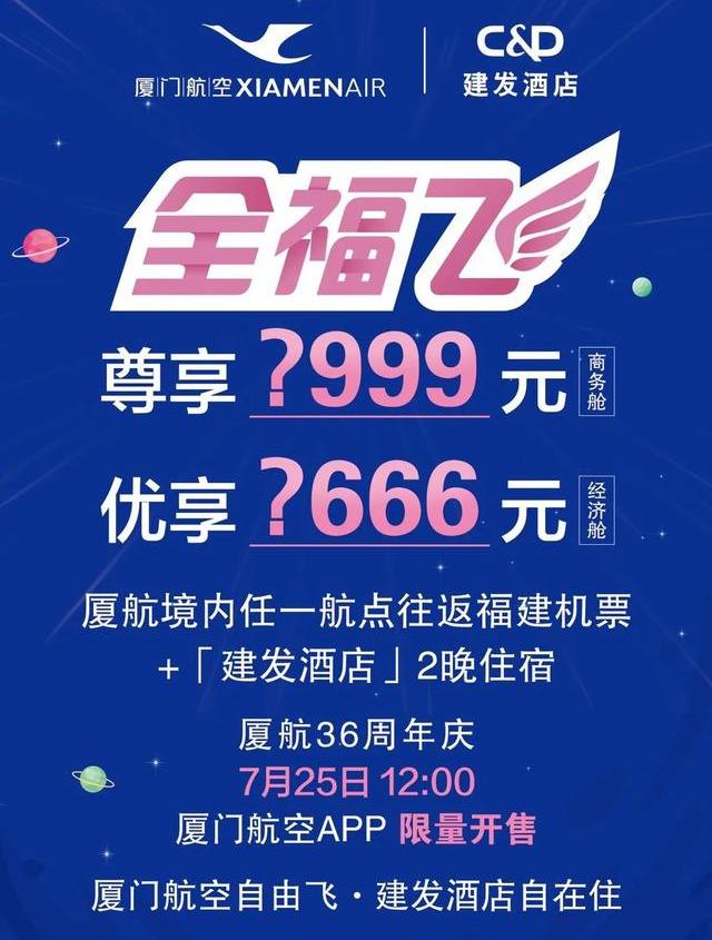 厦门航空也推出了“全福飞”,旅客可订厦航境内任意航点往返福建的机票+建发酒店2晚住宿。