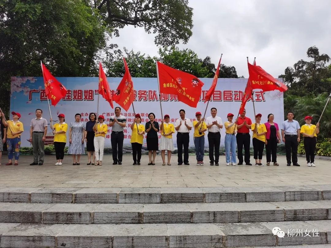 为进一步加强妇女儿童维权工作,探索建立自治区、市、县、乡镇、村五级“桂姐姐”维权服务队,加大法治宣传服务,推动婚姻家庭纠纷预防化解工作创新发展,在自治区妇联的关心和支持下,广西“桂姐姐”维权服务队试点项目落户柳州,并于7月18日上午9时在龙潭公园下沉式广场举行启动仪式。自治区妇联副主席伍艳娟,柳州市委副书记梁旭辉,市公安局、市检察院、市中级人民法院、市司法局、市卫健委、市民政局、市妇联、鱼峰区委等相关单位领导出席仪式。柳州市妇联主席吴珊珊主持仪式。