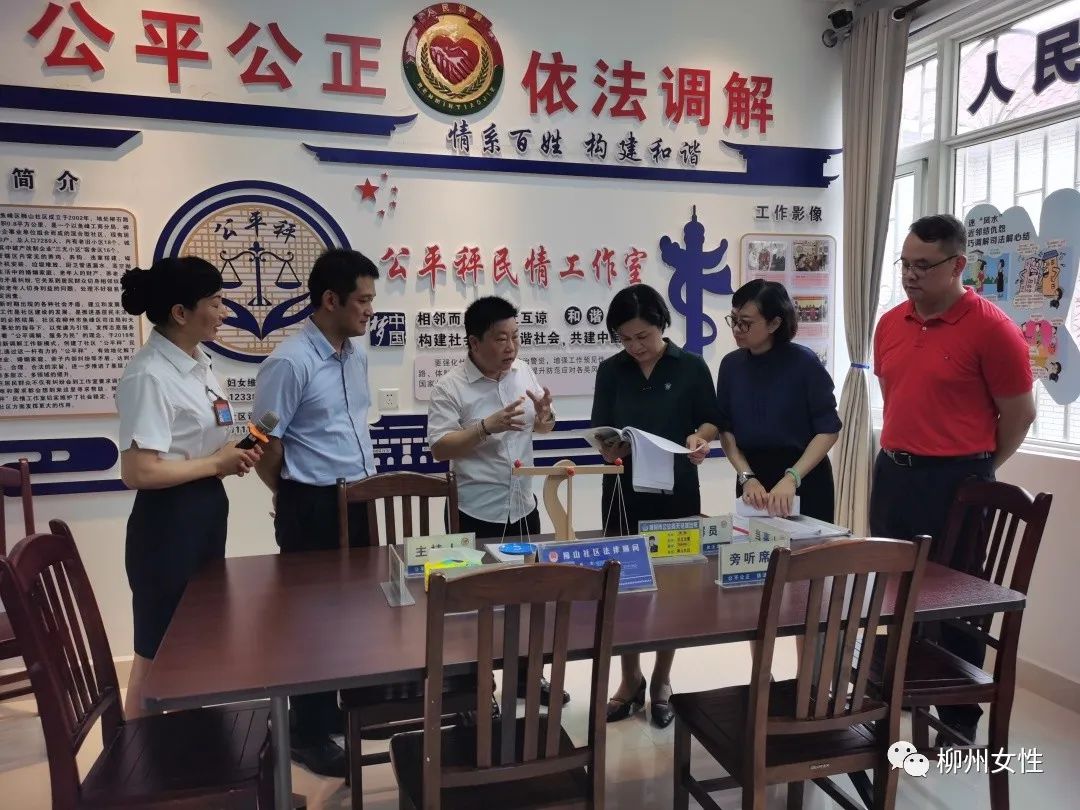 仪式结束后,伍艳娟一行人来到鱼峰区狮山社区服务中心,随着社区人员的讲解,他们依次参观了红色教育基地、微型消防站、服务大厅、调解室、活动中心等。在调解室,社区调解员谢阿姨热情地讲述了自己的工作情况,还拿出了调解记录册,为大家讲述自己遇到过的调解故事,一时间现场气氛热烈。伍艳娟对该社区的工作进行了肯定,并进行了短暂的议事会,就目前的发展情况、存在的问题进行商讨,提出对社区下一步发展工作的建议。