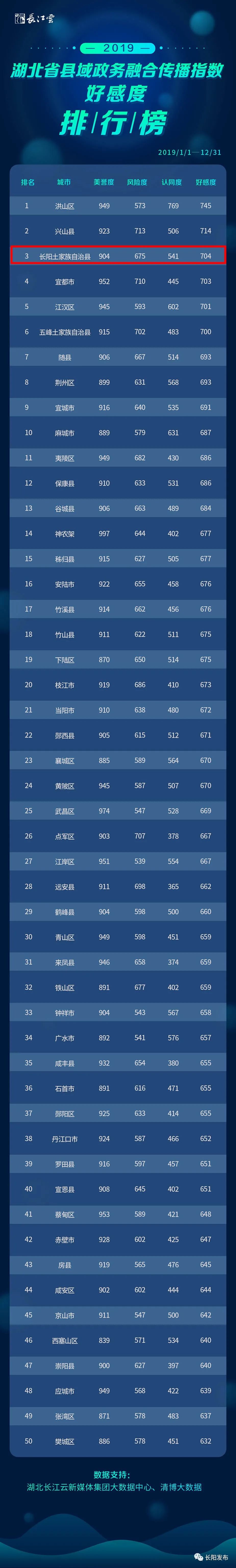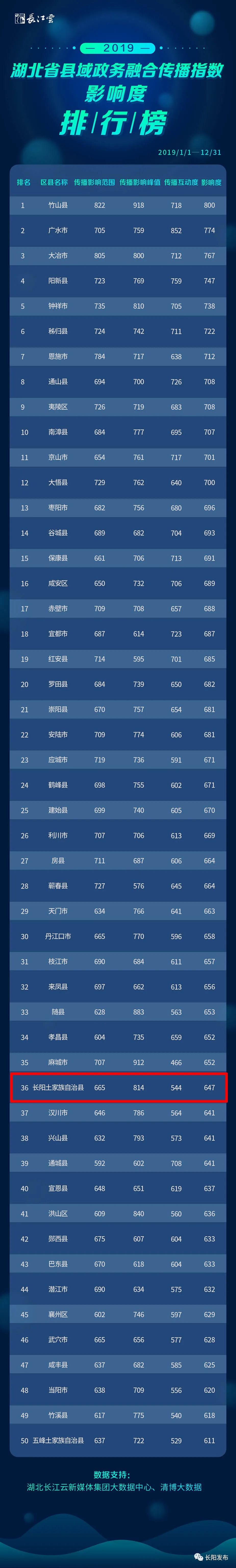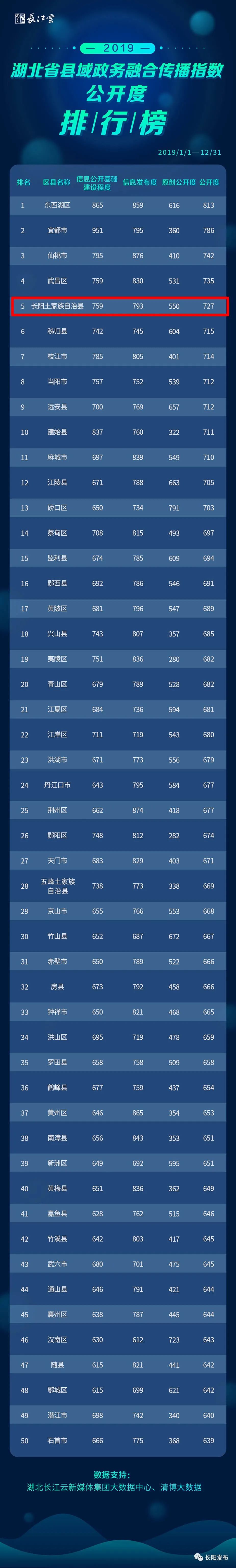 长阳上榜了!2019年度湖北省县域政务融合传播指数分析报告发布