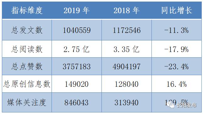 通过对阅读数、点赞数、访客数等指标维度的对比分析可见,政务信息的到达率和互动率相比2018年度均有所减弱。