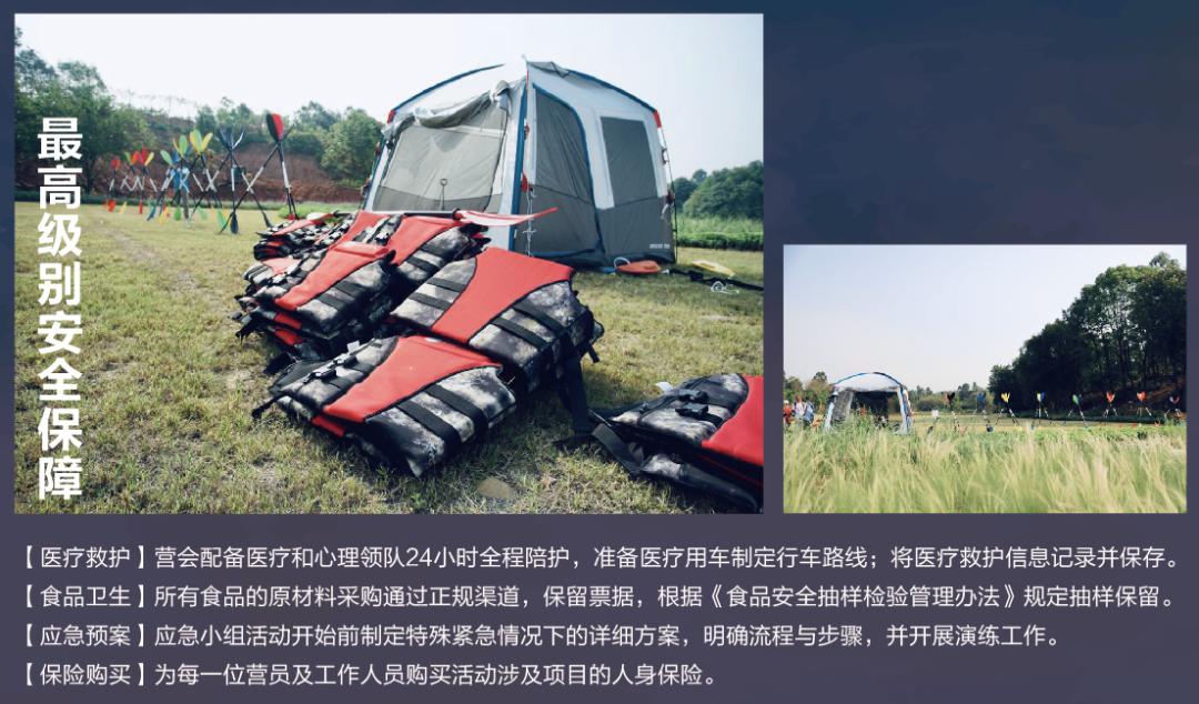 夏令营面向7-14岁青少年,每期5天4夜,每期配备5名老师,全面保障营员的训练、生活、安全。