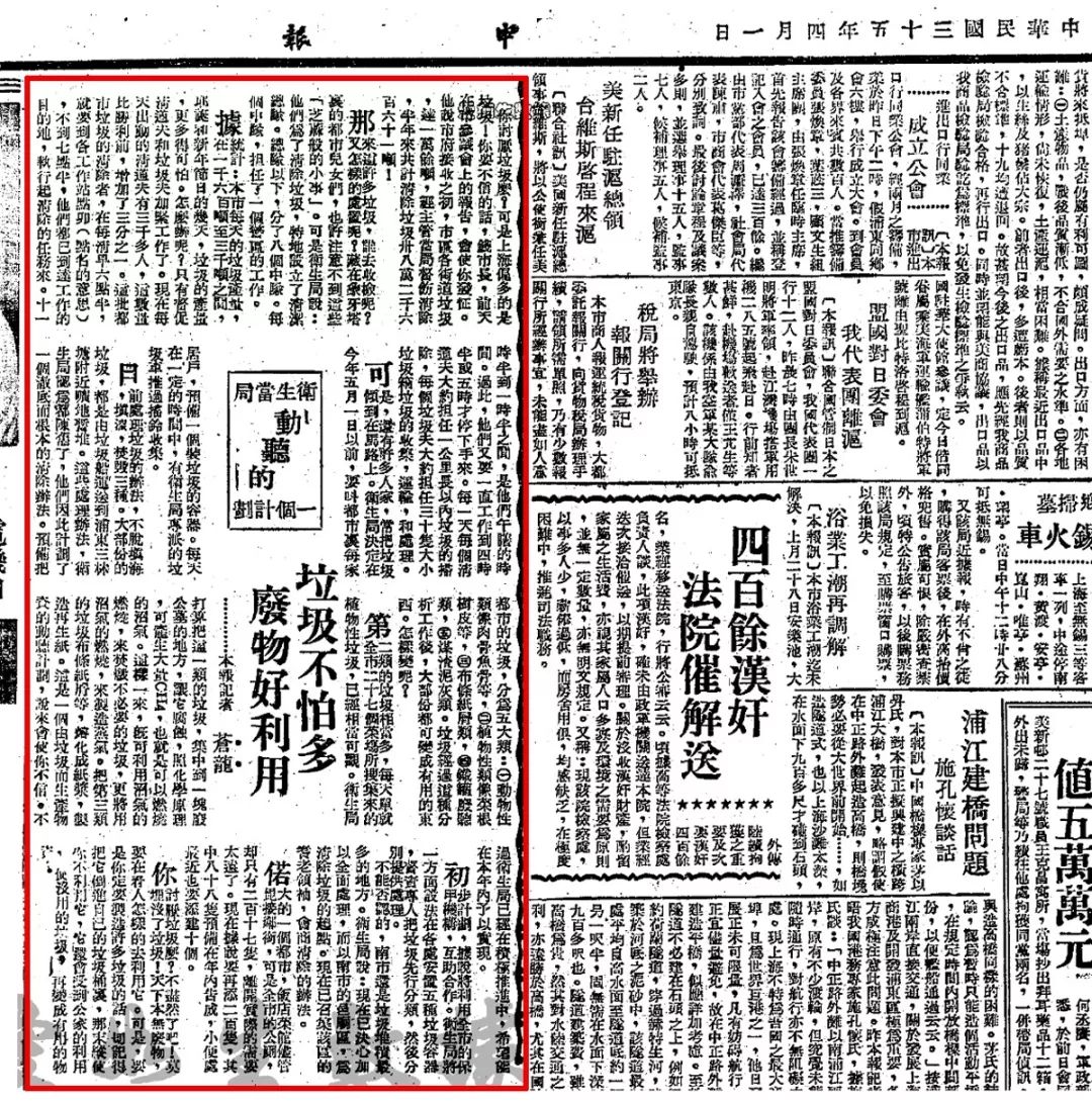 而在1946年4月1日《申报》上这则市卫生局规划内容中则对“垃圾分类”有了明确的规划愿景。