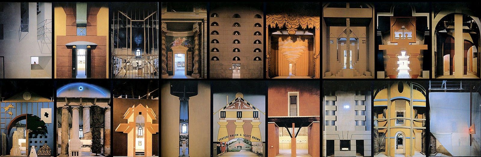 第一届威尼斯双年展开始于1895年,但直到1980年,才迎来第一届建筑双年展。档案展的第五部分回顾了首届建筑双年展的举行。意大利建筑学家保罗·波多盖西(Paolo Portoghesi)成为第一任策展人。他将展览主题定为“过去的呈现”(The Present of the Past)。这一主题是对当时正风起云涌的后现代主义建筑的一次注脚,所要表达的正是对于被现代建筑忽视的历史文脉的重新肯定与反思。其中,主要展品“主街”(Strada Novissima)尤为出名,该作品的资料也将出现在此次档案展中。作品由20个7×9.5米大小的建筑立面所组成的人工布景组成“街道”,每个立面分别由一位著名建筑师设计,而其中许多都是后现代主义建筑的代表人物:如弗兰克·盖里(Frank O Gehry)、雷姆·库哈斯(Rem Koolhaas)等。“主街”使首届建筑双年展获得了超越专业圈的关注,为后续打下基础。