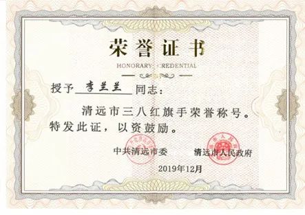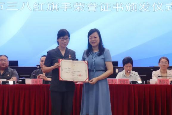 李玉英主席强调,今年的清远市“三八红旗手”表彰活动是第一次由清远市委、市政府命名授予,她代表县妇联向获奖的李兰兰同志表示热烈的祝贺,并为李兰兰同志授予荣誉证书。