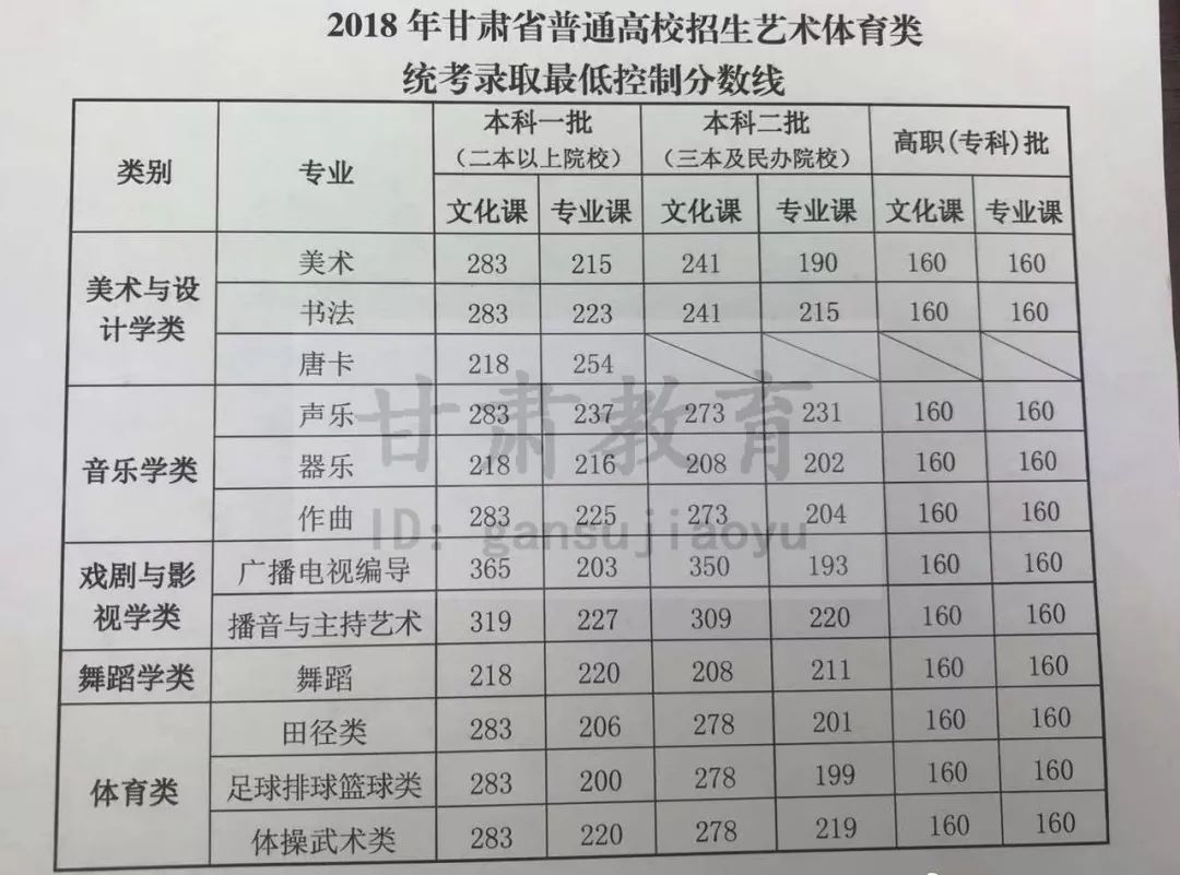 2020年甘肃省普通高校招生录取各批次、各科类最低控制分数线同时公布。