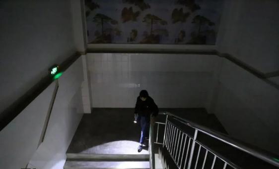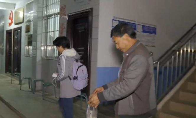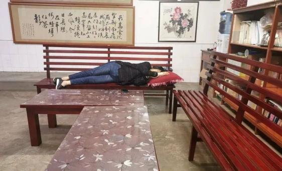 男教师睡在楼梯间。
