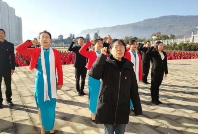 开始重温入党誓词。
