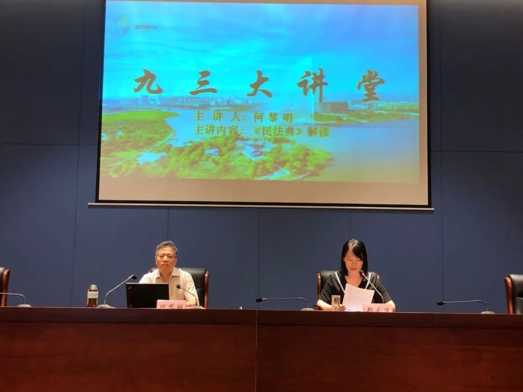何黎明介绍了《民法典》实施背景,针对新旧法重点内容进行对照讲解。随后围绕社会热议,梳理出胎儿是否能够继承遗产、借款合同中如何支付利息、居民小区电梯坏了如何维修、“高空抛物坠物”如何保障等22个问题开展现场互动,并结合工作实践详细讲解。