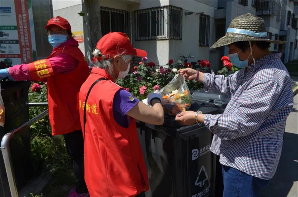 这是一支由15位平均年龄65岁以上的社区居民志愿者组成的队伍,自2019年11月起,每天早晨7点到9点,他们轮流值守在垃圾分类投放点,引导居民正确投放。2020年5月,又增设了晚7点到9点的值守时间。