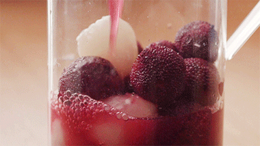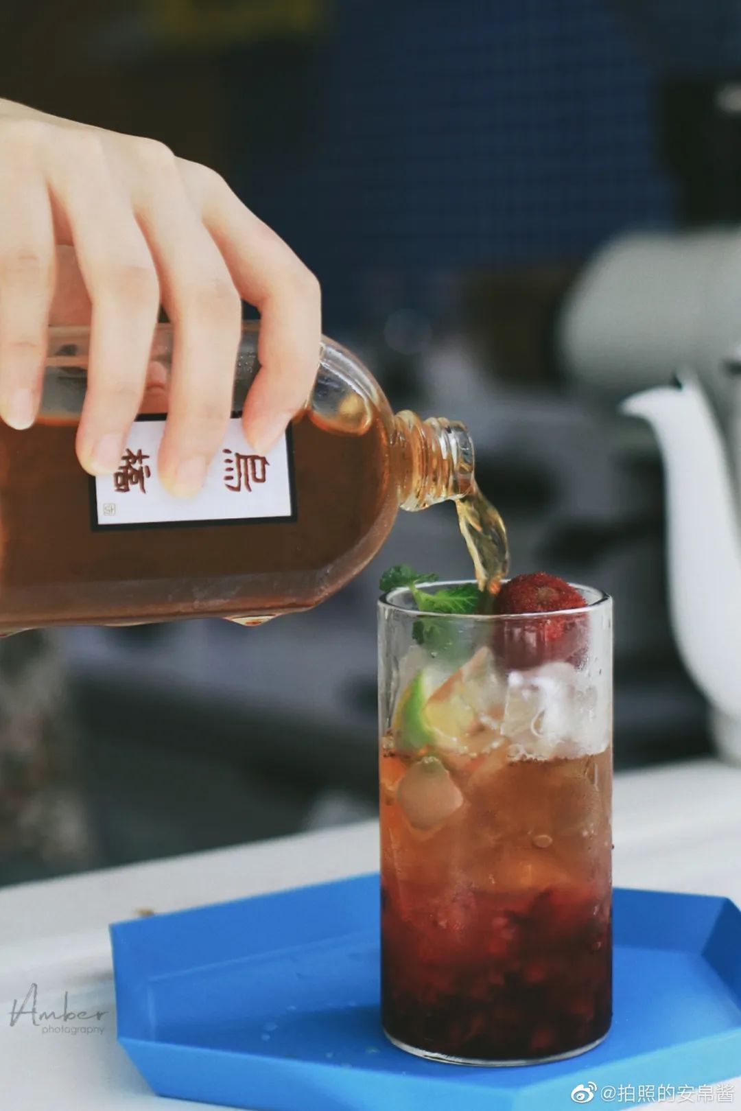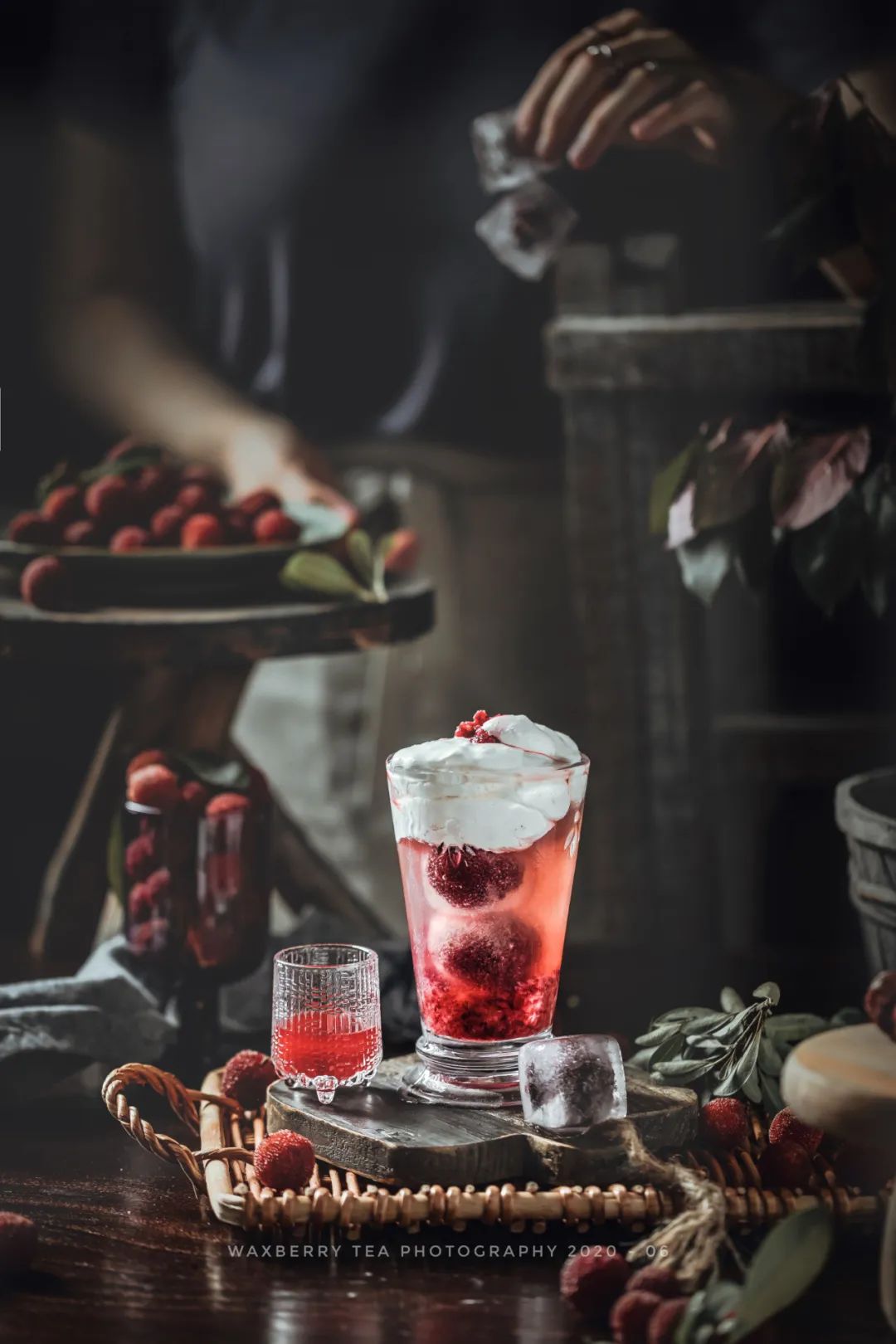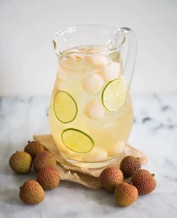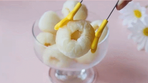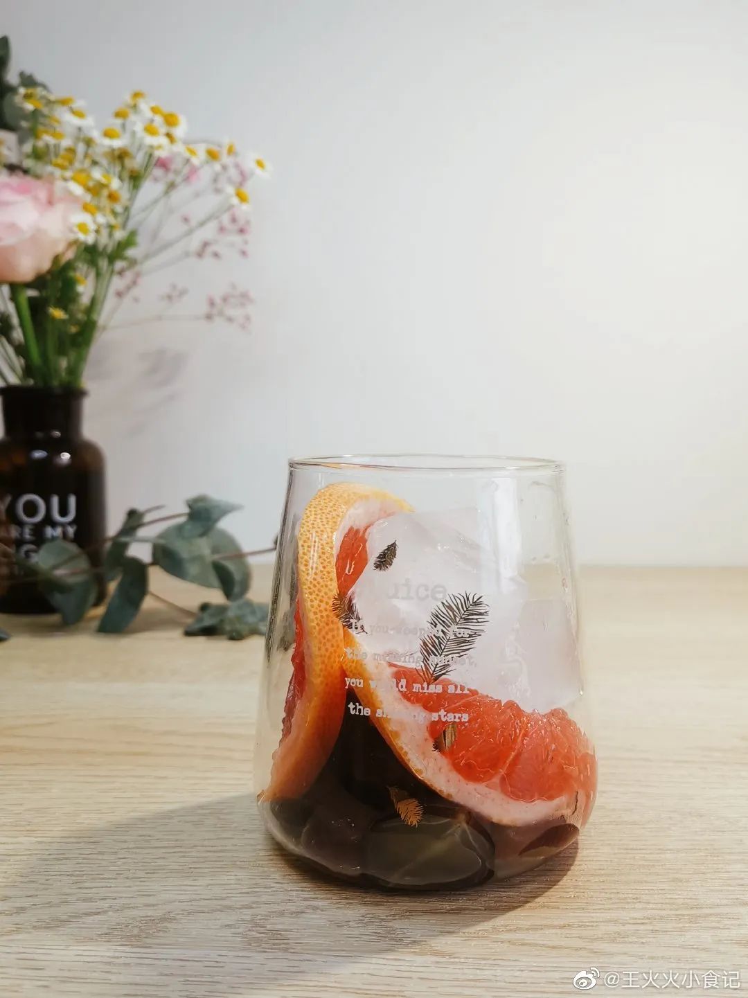 直接把冻荔枝放进茶水里,水果冷泡茶就做好了。是不是超级简单?