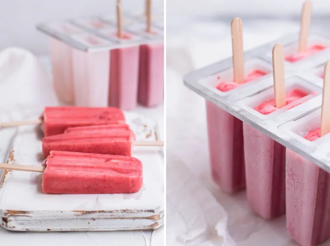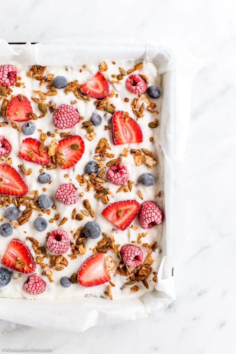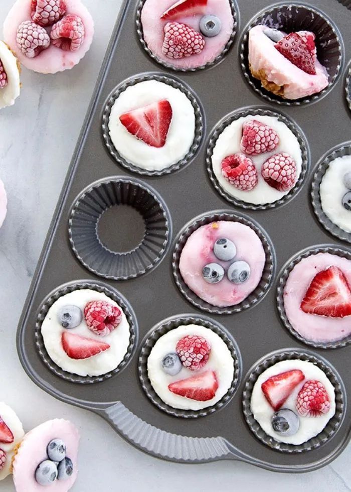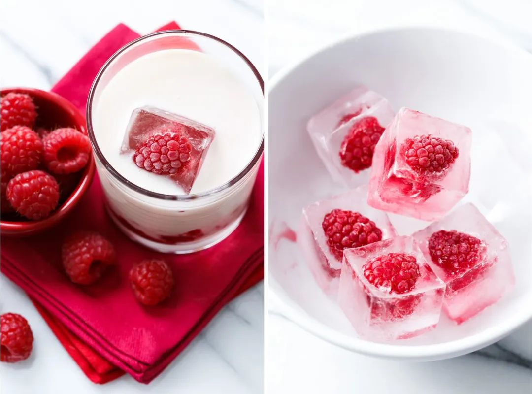 莓果也可以直接冻,不过更推荐这两种做法:一种是切半冻成冰格。早晨热好牛奶,丢两颗莓果冰块迅速降温,融化成一杯莓果牛奶,粉粉的可爱极了。