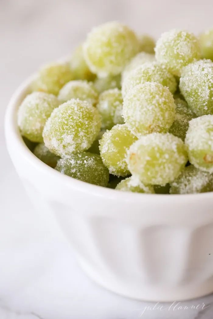 夏日最不会少的就是那一串串或绿或紫的葡萄啦,把葡萄裹一层白砂糖,放进冰箱冻5个小时,拿出来硬邦邦的,不怕硌牙的勇士可以试试这一颗颗葡萄味的冰块