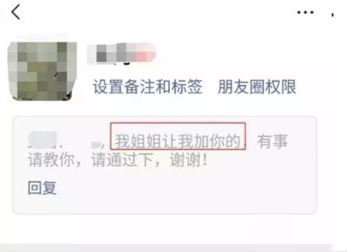 不仅对方能准确无误地叫出自己的名字,且都声称是“我姐姐让我加你”,除“姐姐”,还可能是“阿姨”“爸爸”“舅舅”等......如果你在半信半疑之间,同意了对方的添加好友申请,或许已经开始一步步走进骗子的圈套。