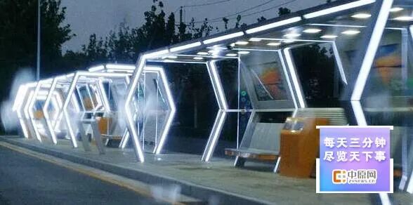 2)郑州新型公交站台亮相北三环,造型独特并配有灯光。