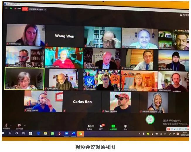 一场由48个国家学者和活动人士自发组织的题为“任何针对中国的新冷战都违背人类利益”全球在线公开会议同步直播,并发布了名为“拒绝新冷战”的14个语种版本的共同声明。此次活动集结了来自中国、美国、英国、印度、俄罗斯、加拿大、委内瑞拉和巴西等国的17位知名学者和意见领袖参与发言。吸引全球超过50多个国家和地区的网友在线收看。