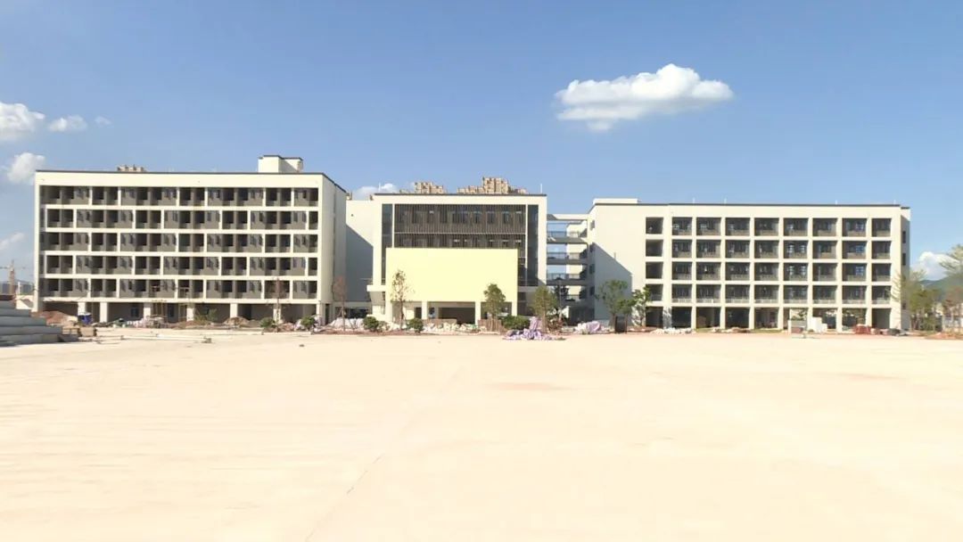 目前学校的初中部教学楼,小学部教学楼室内外装修已基本完成,即将进入设备装备阶段,学生宿舍、体育馆、综合楼也进入装修的最后阶段,按照建设方的规划,可以在九月份如期开学。