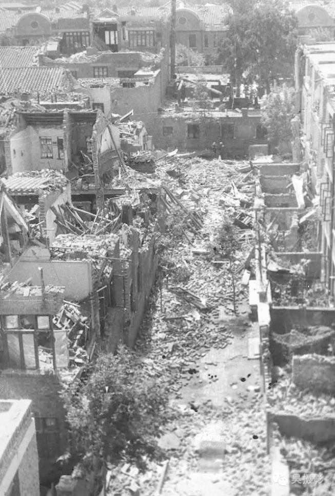 行走在震后的街道上,从徐州道至琼州道,从多伦道到大胡同,从和平路到东马路,整条街都遭到了破坏。南营门街是市区当时地震的重灾区,一平方公里的地方倒塌房屋10283间,多数楼房毁于一旦,287人死于非命。