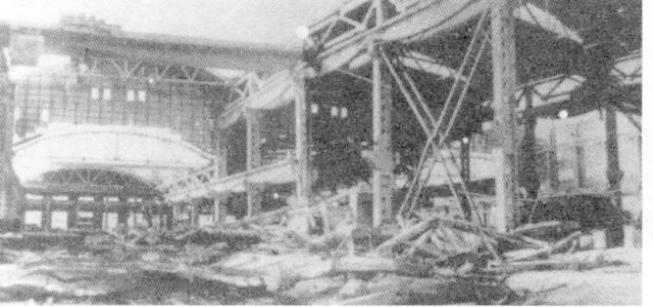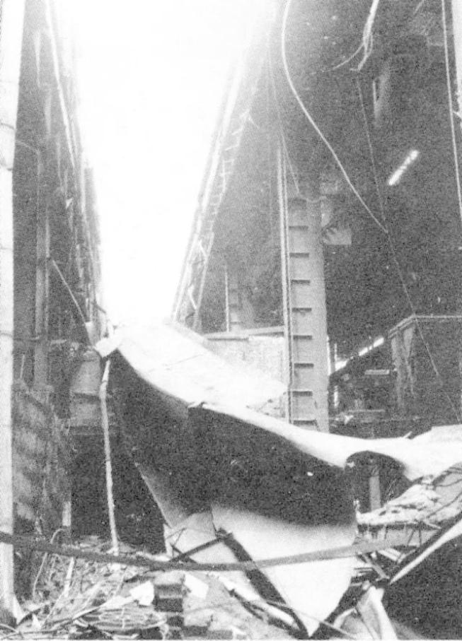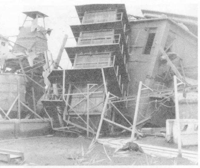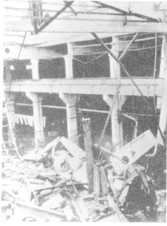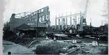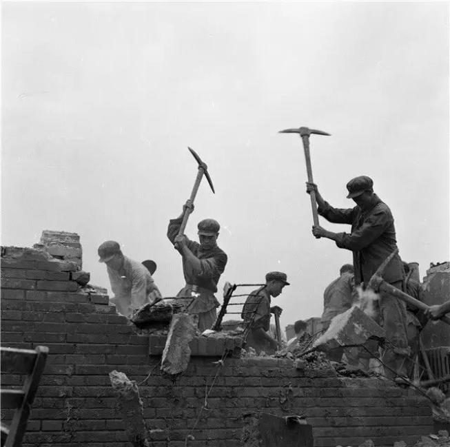 在地震中遭到重创的天津碱厂,几乎成为了一片废墟。曾经巍然矗立、高48米的蒸吸车间厂房被拦腰折断,超10万平米的厂房被破坏,542台设备报废,近三万米管线断成了一节节。新干燥、新碳化系统全部被震坏,排水沟被淤死,供水供电全部中断。