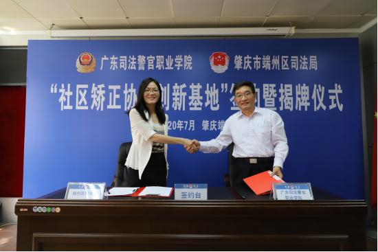 为准确执行《社区矫正法》及《社区矫正法实施办法》的有关规定,贯彻落实省司法厅决策部署及《2020年广东省社区矫正工作要点》精神,加强与高等院校合作,探索“社区矫正+高校”的合作机制。7月27日下午,广东司法警官职业学院“端州社区矫正协同创新基地”在肇庆市端州区司法局挂牌成立,这标志着肇庆市首个“社区矫正+高校”的协同创新项目落户端州区,社区矫正工作再添新的社会参与力量。