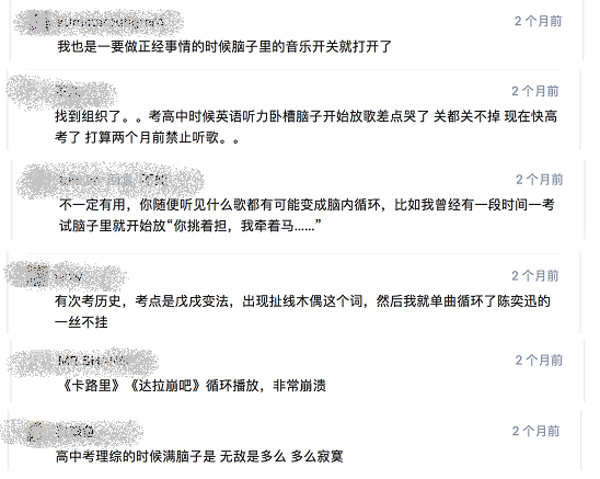 因为脑子里循环放歌,笔者与清华北大失之交臂,一度挺懊恼。(脑子:我没有!我不是!)直到,我看到这些评论,才发现原来我不是一个人。