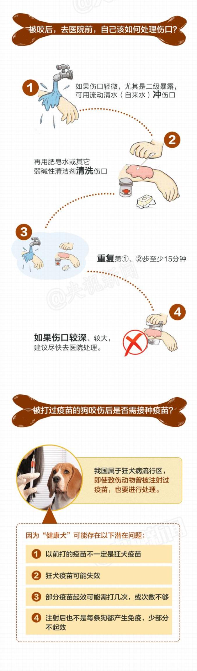 其次要尽快就医,晚上受的伤,不要怕麻烦拖到第二天,因为注射越早,人体产生抗体越早,而且一定要完成全程接种;