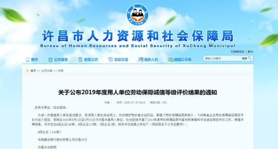 原标题:《2019年度用人单位劳动保障诚信等级评价结果公布》