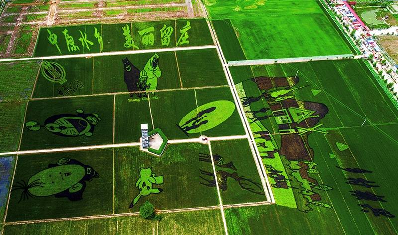 一幅幅活灵活现、美轮美奂的稻田画跃然在充满生机的绿色基底上,让你深刻感触人与大自然和谐共生的美好画面。
