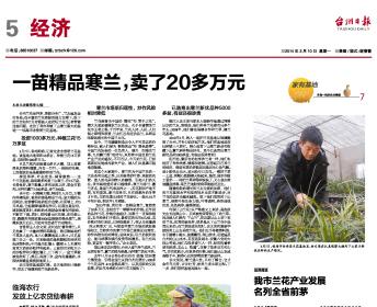 2013年,浙江花农种植的一苗精品寒兰以20多万元的高价成交,这个价格足以购买一辆配置不错的小轿车。
