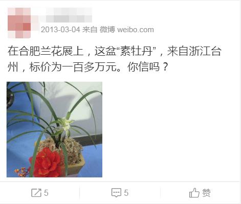 在2013年合肥兰花展上,来自浙江台州的兰花“素牡丹”,单株标价高达一百多万元。