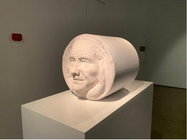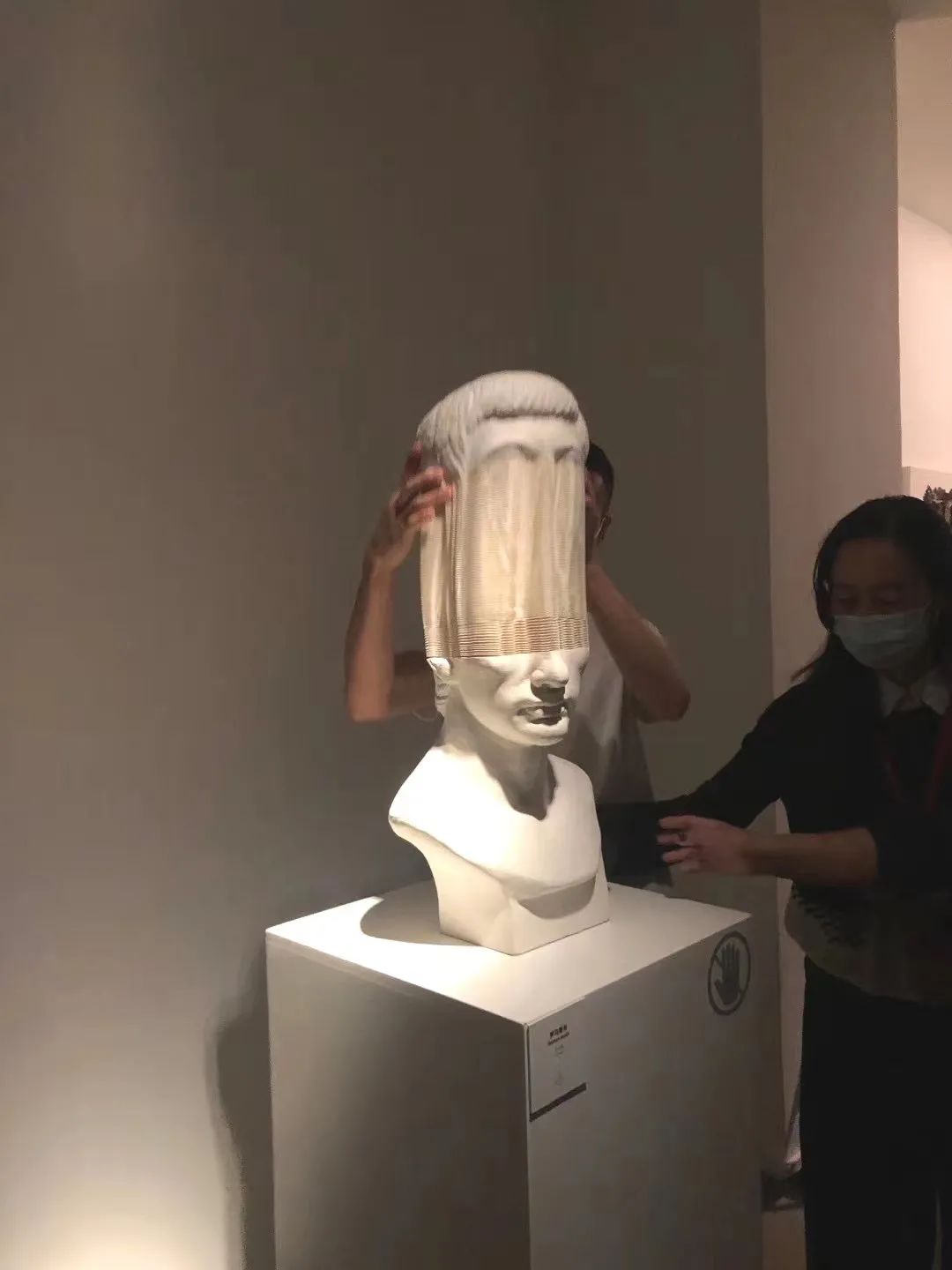 展厅中还可以看到李洪波的经典作品“教具系列”,比如《罗马青年》,它乍看上去是一尊普通的石膏像,但仔细观察会发现,这尊石膏像是由若干层薄薄的纸张堆积而成。用双手轻轻一拉,石膏像就会随之拉伸扭曲,松手后又能瞬间复原。