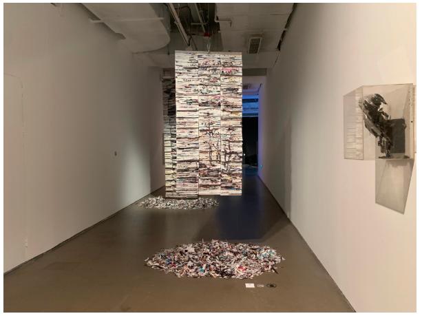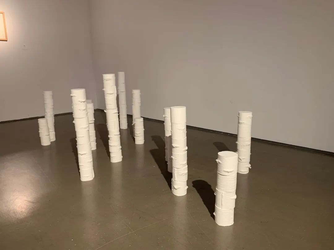 在展览现场还可以看到中多有意思的作品,比如艺术家王雷的作品,很像是一件挂毯,但细看的话,会发现是用报纸编织而成;艺术家雷蕾直接用糯米纸和蜂蜜浇灌而成的瓷瓶,可以以假乱真,即便是贴近观看也很难发现是用纸创作的;艺术家文豪作品《异形》看起来像是一个小树林,树木高低起伏错落有致,走近的话会发现所谓的“树木”全部都是卫生纸;艺术家王伟伟雕塑作品《望》,也同样如此,看起来像是一件石雕作品,但其实艺术家是用 纸浆和水墨创作而成。