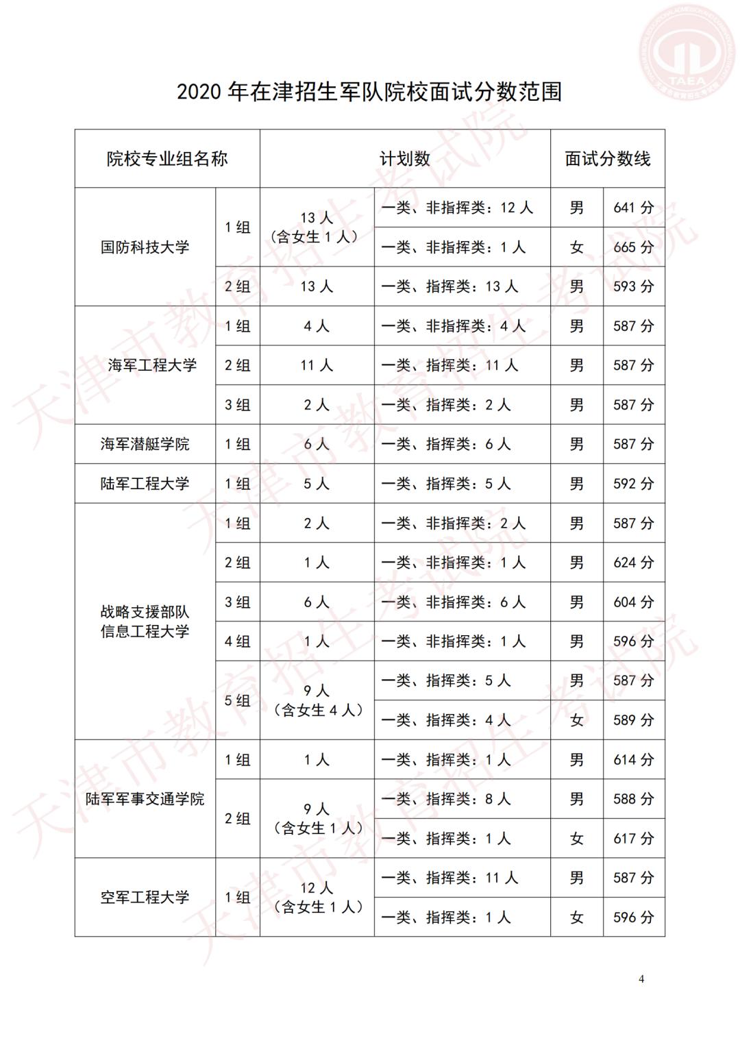 原标题:《2020年在津招生军事、公安等招生院校面试分数范围确定》