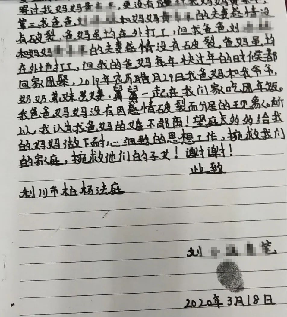 法院新闻|孩子因父母要离婚,给法官写了这样一封信