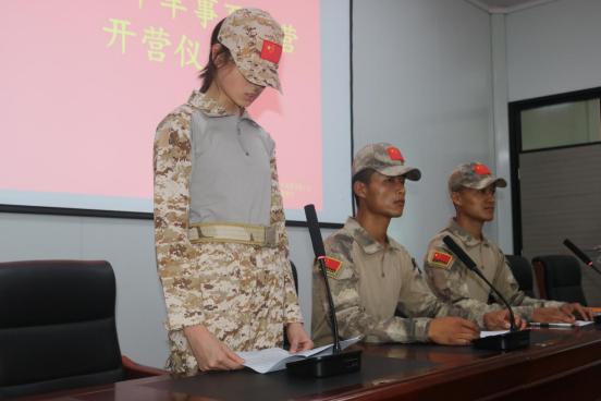 庄严开营仪式上,参训教官代表作发言,表示一定不辜负领导和营员家长对此次夏令营寄予的厚望,保证高质量地完成各项任务,同时也对同学们提出了严格的要求。营员代表上台发言,号召同学们要严格要求自己,通过此次军事夏令营活动增强爱国主义的精神,培养吃苦耐劳的意志、增强团结协作、互帮互助的优良品质。