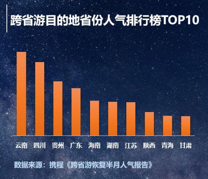 跨省旅游恢复半月,在家“憋”了大半年的游客终于开始走出家门长途旅行。哪些省市人气更高?7月29日,携程发布的《跨省游恢复半月人气报告》“跨省游目的地人气排行榜”中显示:贵州位列全国第三!