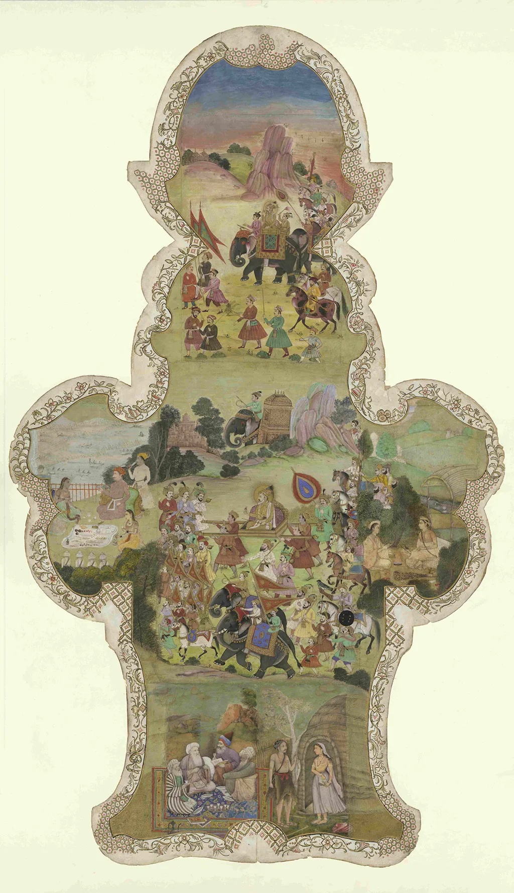 ▲ [印] 无名氏《百万厅画板》,1627-1628年,纸本水彩描金细密画,39.4 x 55.6 cm