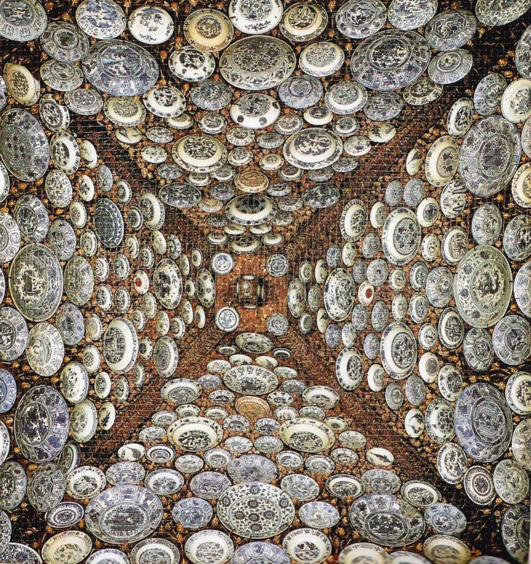 ▲ 位于葡萄牙里斯本的桑托斯宫有座“瓷厅”,其金字塔形天花板上镶嵌着261块克拉克青花瓷盘