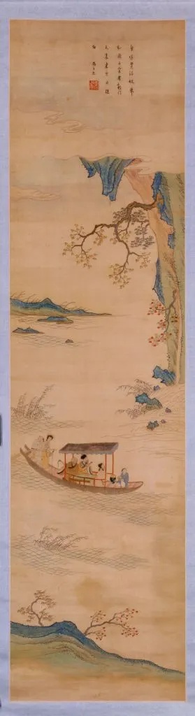 ▲ 清乾隆 刺绣赤壁夜游图轴,纵186厘米,横46厘米