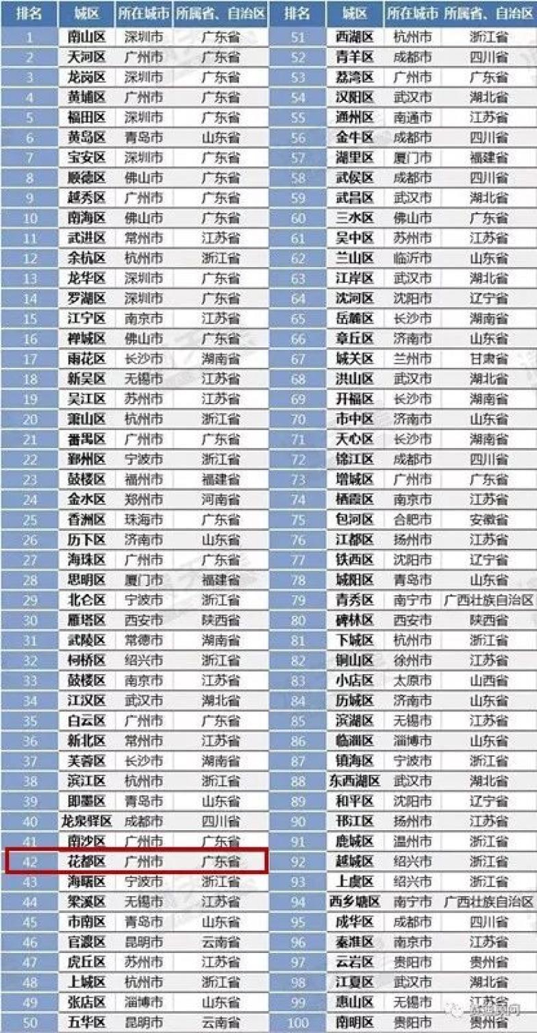 在工信部研究院赛迪顾问发布《2019中国城区综合竞争力百强研究》里,花都凭实力从我国889个辖区(不包含直辖市辖区)中脱颖而出,排名第42位。