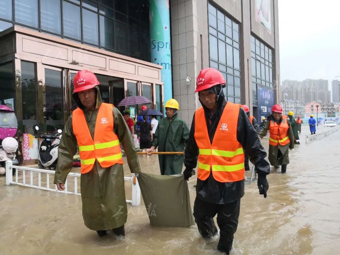 ▲7月19日,位于安徽省合肥市肥西县的派河水位高涨,并出现倒灌城区现象。河水直逼派河边的一座商场,商场前积水严重。正在附近施工的中铁四局集团有限公司引江济淮工程(安徽段)江淮沟通段J002标项目经理部在接到肥西县政府通知后,紧急征调80余名员工以及6辆大型施工车,开展抢险加固。