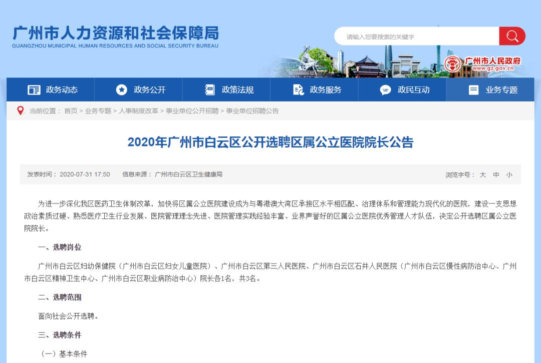 原标题:《年薪45万元以上!白云区公开选聘区属公立医院院长》